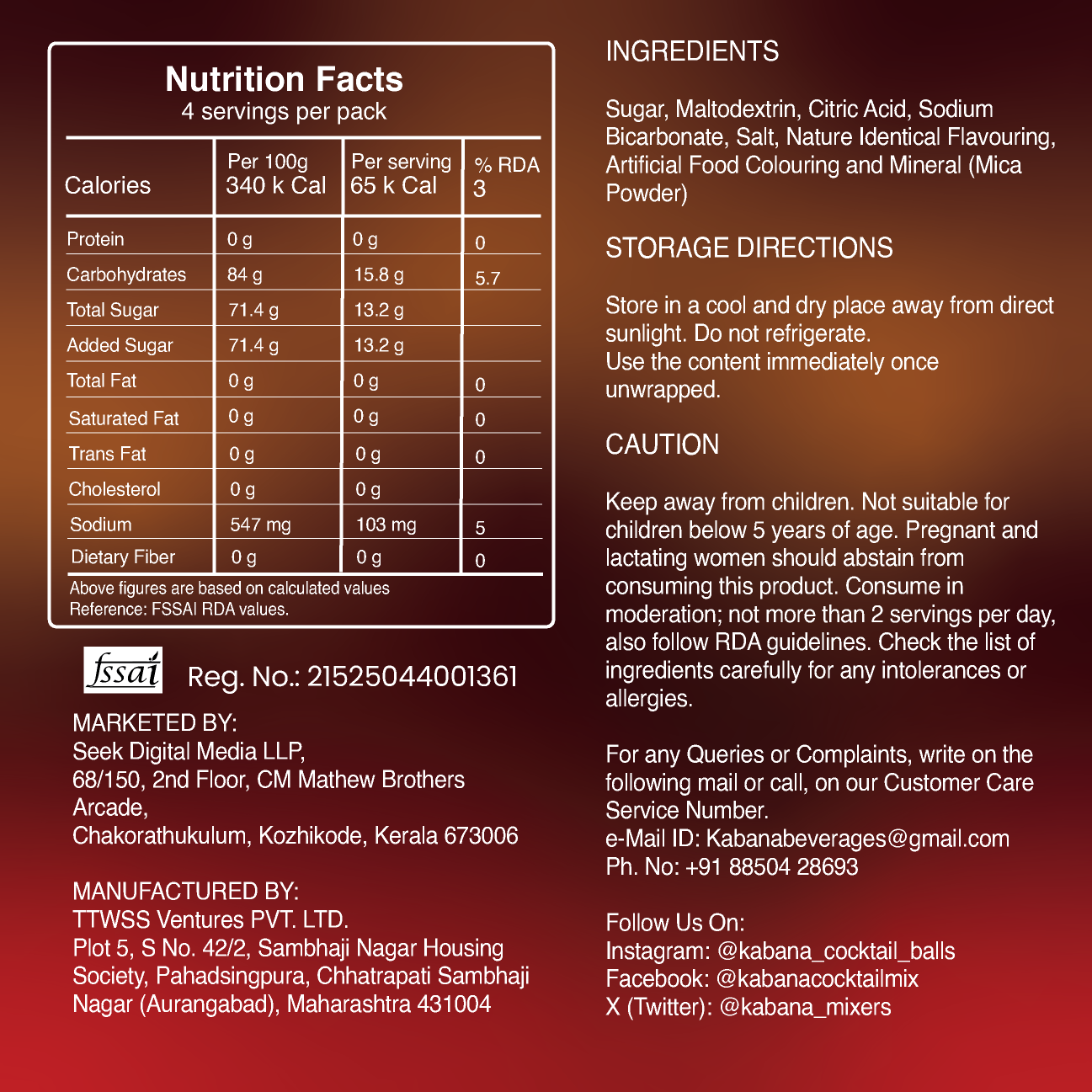 - Product Type: Non-Alcoholic Cocktail/ Mocktail Premix Effervescent Balls